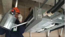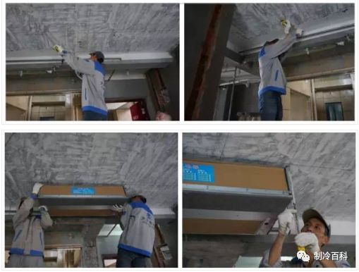 ①吊裝中央空調(diào)室內(nèi)機,并對內(nèi)機進行包裹,避免有灰塵雜質(zhì)進入;