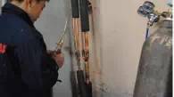 這是焊接完成后必須對銅管進行的壓力測試,往銅管內(nèi)充入一定壓力的氮氣進行保壓,一般壓力測試時間為24小時。