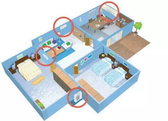 ① 同一系統(tǒng)的室內(nèi)機使用一個空開;